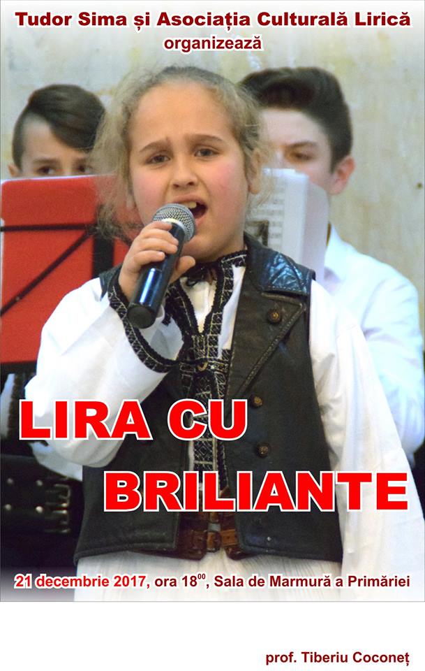 Joi, 21 decembrie 2017, de la ora 18.00, Asociaţia Culturală LIRICA organizează în Sala de Marmură a Primăriei Municipiului Petroşani, spectacolul LIRA CU BRILIANTE