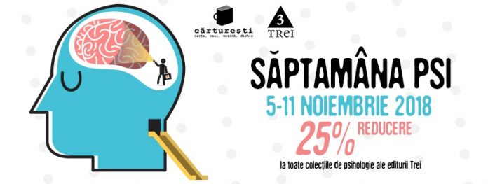 Dacă dorești să afli mai multe despre mindfulness și resursele sinelui, despre toxicitatea din relațiile interumane și despre eroii și monștri care locuiesc în fiecare dintre noi, vino în perioada 5-11 noiembrie 2018 la atelierele ”Săptămânii PSI” organizate de Editura Trei și găzduite de Librăriile Cărturești. Vei avea ocazia să discuți despre iubire, parentaj, descoperirea de sine și multe alte teme psihologice cu experți în psihoterapie din șapte orașe din țară.