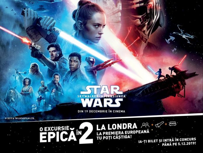 Cinema City ți-a pregătit o călătorie plină de aventură, într-o galaxie foarte, foarte îndepărtată. Dacă ești un Jedi adevărat, înscrie-te în concurs până pe 5 decembrie 2019 și poți câștiga o excursie pentru două persoane la Londra, la premiera europeană a filmului “Star Wars: The Rise of Skywalker”