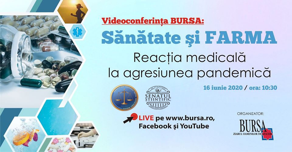 Tema videoconferinței este: “Sănătate şi Farma – Reacţia medicală la agresiunea pandemică”.