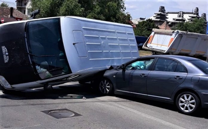 În urma impactului, autoutilitara s-a răsturnat, fiind proiectată într-un autoturism condus de un bărbat de 45 de ani, din Craiova, care se afla oprit la intersecţie pentru acordare de prioritate. Din fericire accidentul nu a fost soldat cu victime.