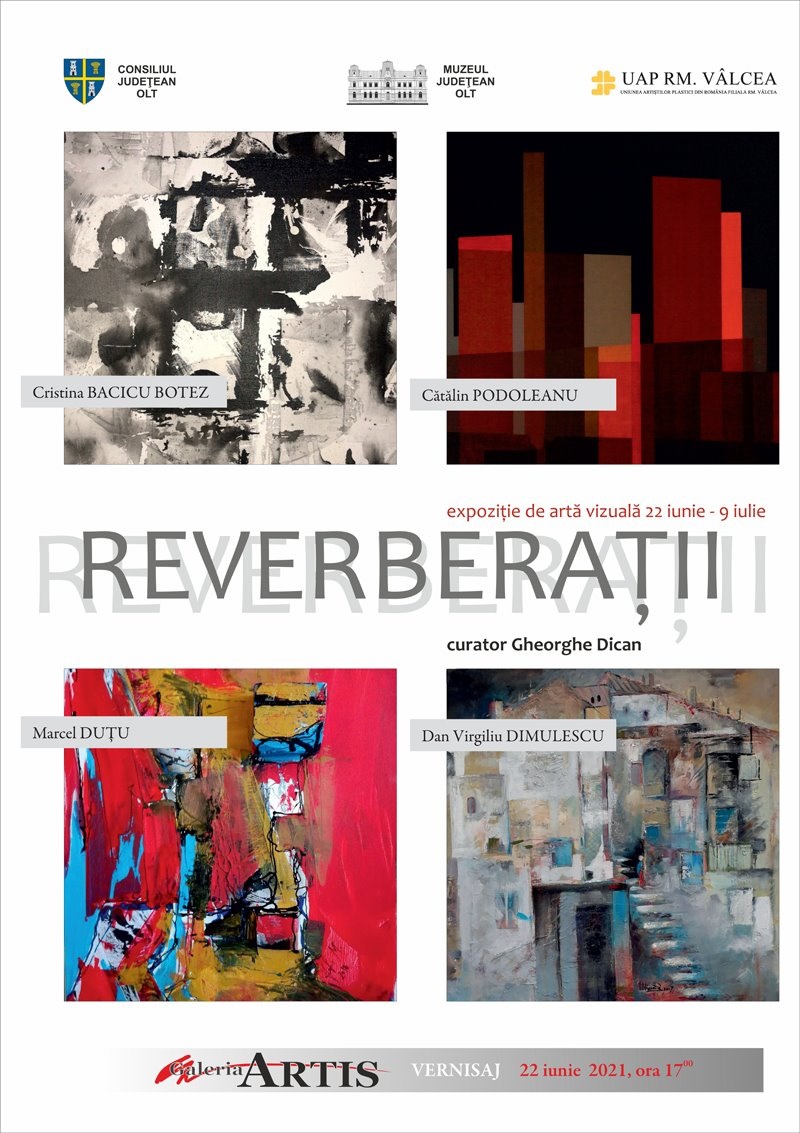 Marți, 22 iunie 2021, începând cu orele 17.00, Muzeul Județean Olt, în parteneriat cu Filiala Râmnicu Vâlcea a Uniunii Artiștilor Plastici din România, organizează vernisajul Expoziției de pictură „REVERBERAȚII – Artă abstractă“