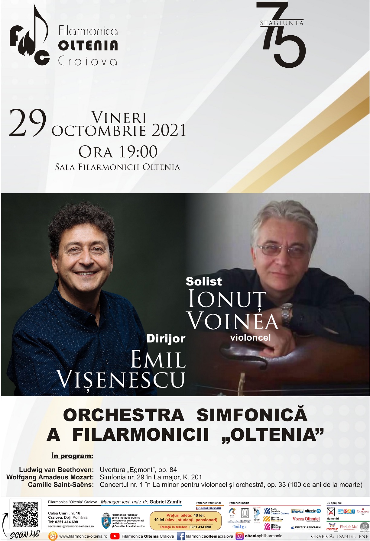 La pupitrul Orchestrei Simfonice va dirija EMIL VIŞENESCU, artist activ al scenei naţionale şi internaţionale. A susţinut multe concerte cu orchestrele simfonice ale filarmonicilor din Pitești, Brașov și Craiova, cu orchestra Concerto a UNMB și cu orchestra de cameră Ionel Perlea, al cărei fondator este.