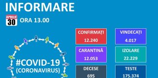 COVID-19 în județul Vâlcea – 30 aprilie: 153 persoane în carantină,...