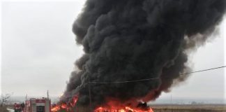 Vâlcea: Incendiu într-un depozit de cauciucuri din Drăgășani – imagini VIDEO
