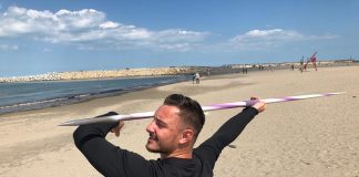 Alexandru Novac, atletul care ne va reprezenta la Olimpiada de la Tokyo în proba de aruncare a suliței, se pregătește pe plajă la sportul...